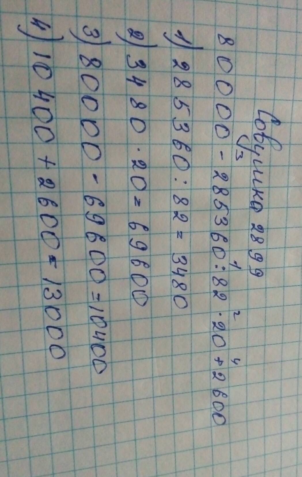 3) 80000-69600=10400