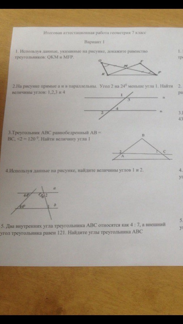 2) ∠1 = ∠ВАС (углы при основании в равнобедренном ΔАВС); ∠1 = 60°