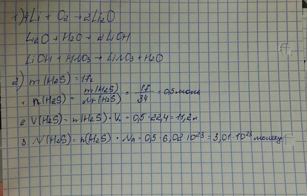 2)Какой объем займут при н.у. 17г. сероводорода? Сколько молекул его содержится в этом объеме?