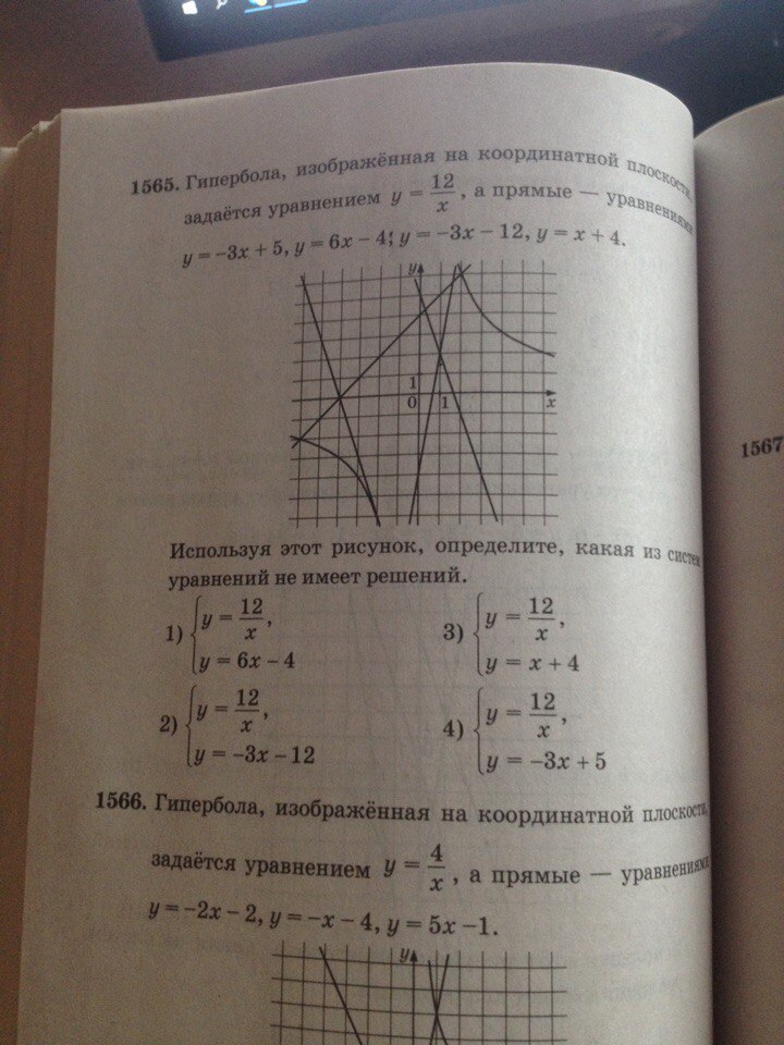 4 система не имеет решений,потому что гипербола у=12х и прямая