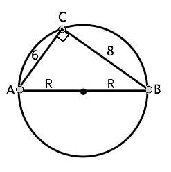 Прямоугольный треугольник с катетами 6 и 8см вписан в окружность найти её радиус. Распишите пожалуйста по подробнее.