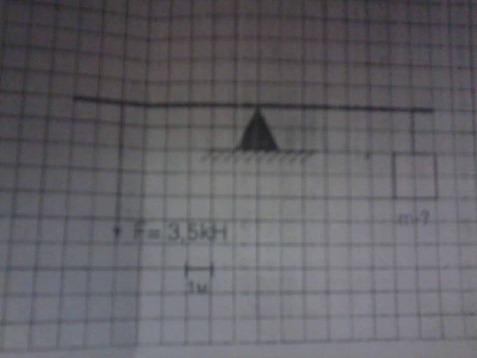 исходя из гафика,приведенного на рисунке,определите массу груза,удерживаемого на рычаге(левом F=3.5kH 1м m-?)