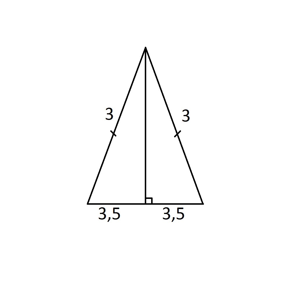 Этот треугольник равнобедренный, и если провести высоту - треугольник разделится на 2 равных прямоугольных треугольника. Гипотенуза треугольников будет 3, а катет окажется 3,5. Катеты прямоугольных треугольников всегда меньше гипотенузы.