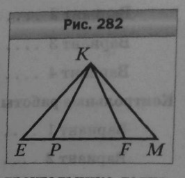 1) ΔKEP = ΔKMF, т.к KE = KM, ∠MKF = ∠EKP (по условию), ∠K = ∠M (углы при основании в равнобедренном ΔКЕМ)