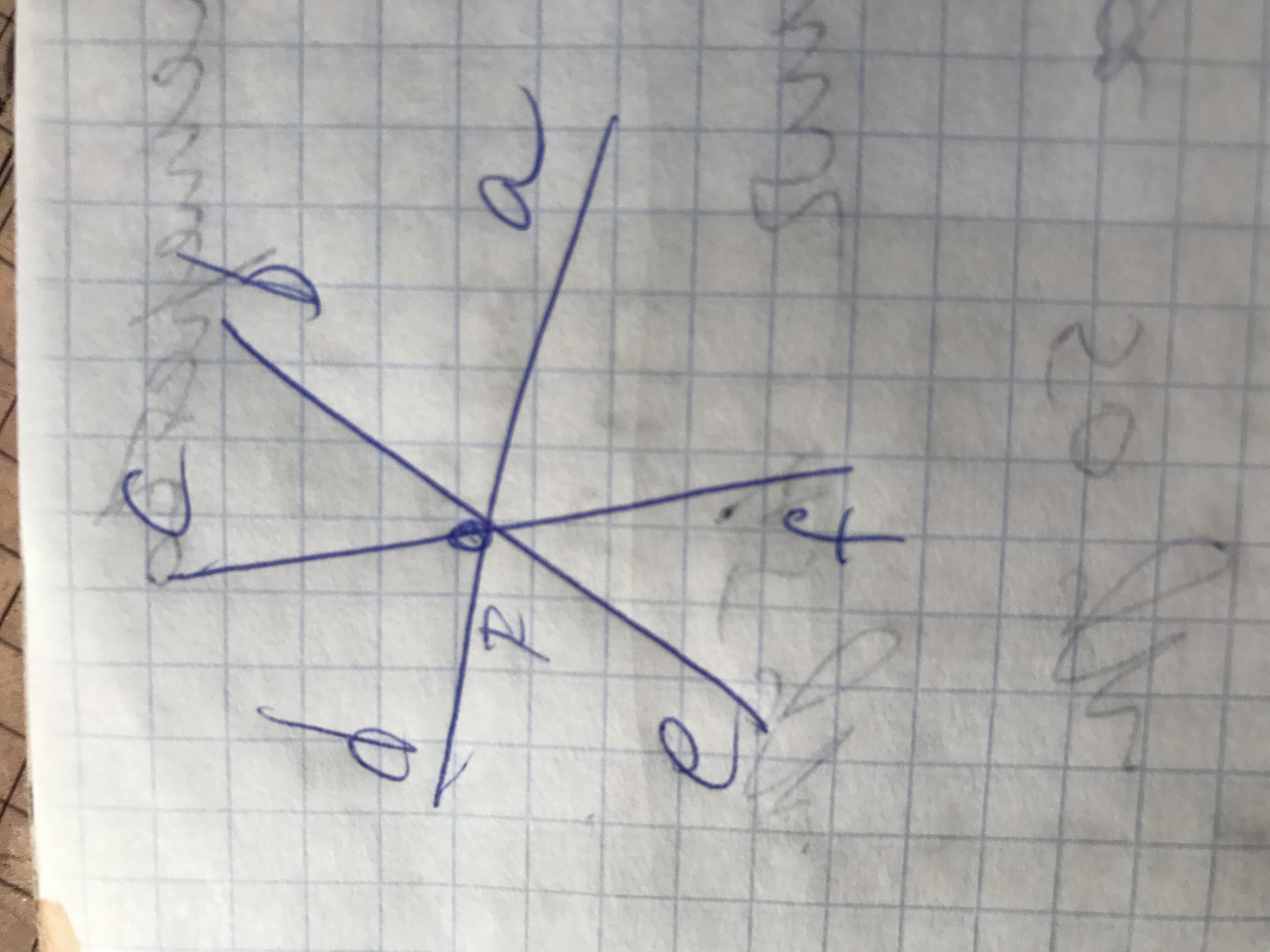 Отметь точку F и проведи через неё 3 прямые. Сколько получилось лучей с началом в точке F? Обозначь каждый из них