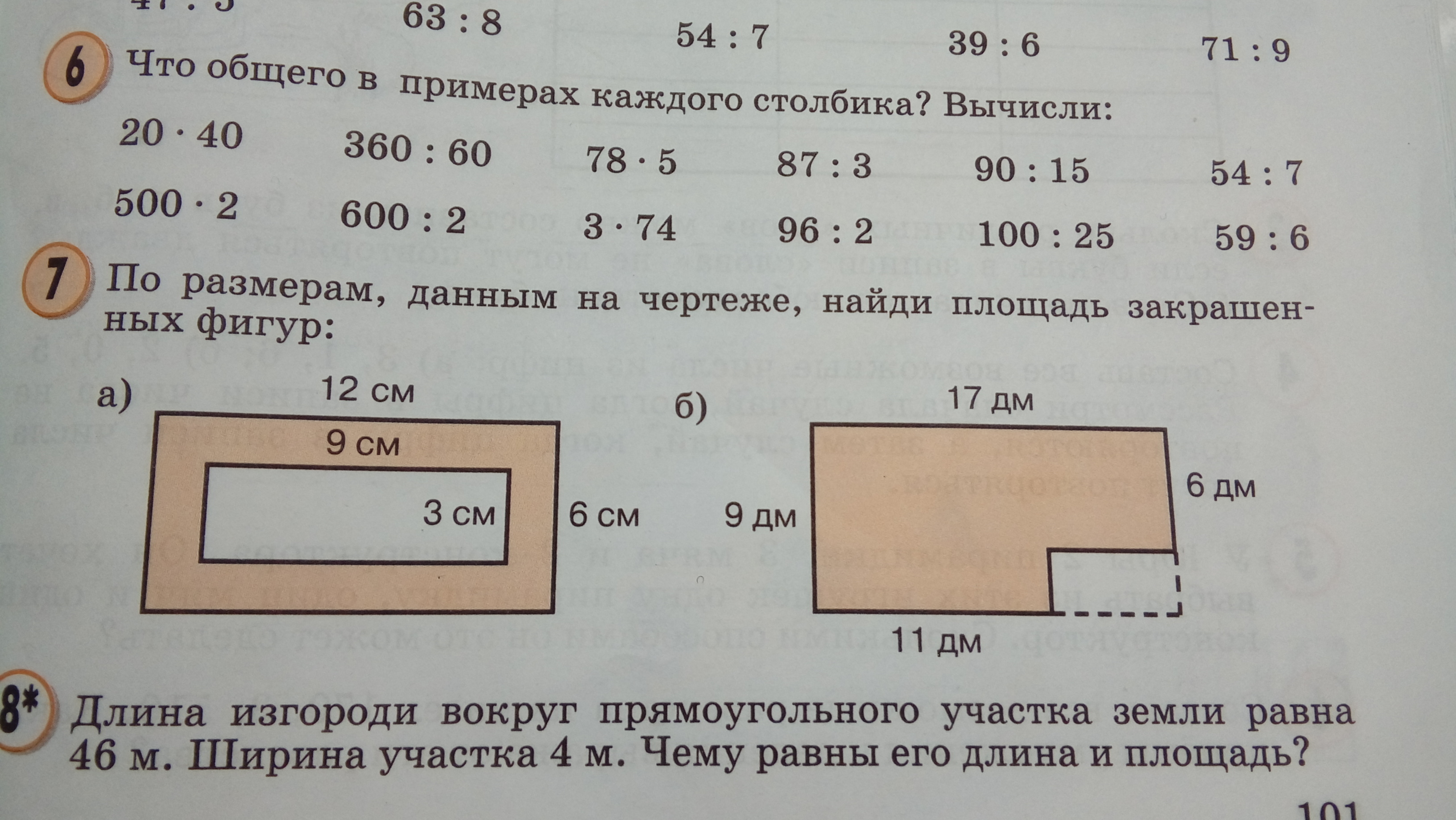 2) 9*17 - 3*6 = 153 - 18 = 135 (дм кв.)