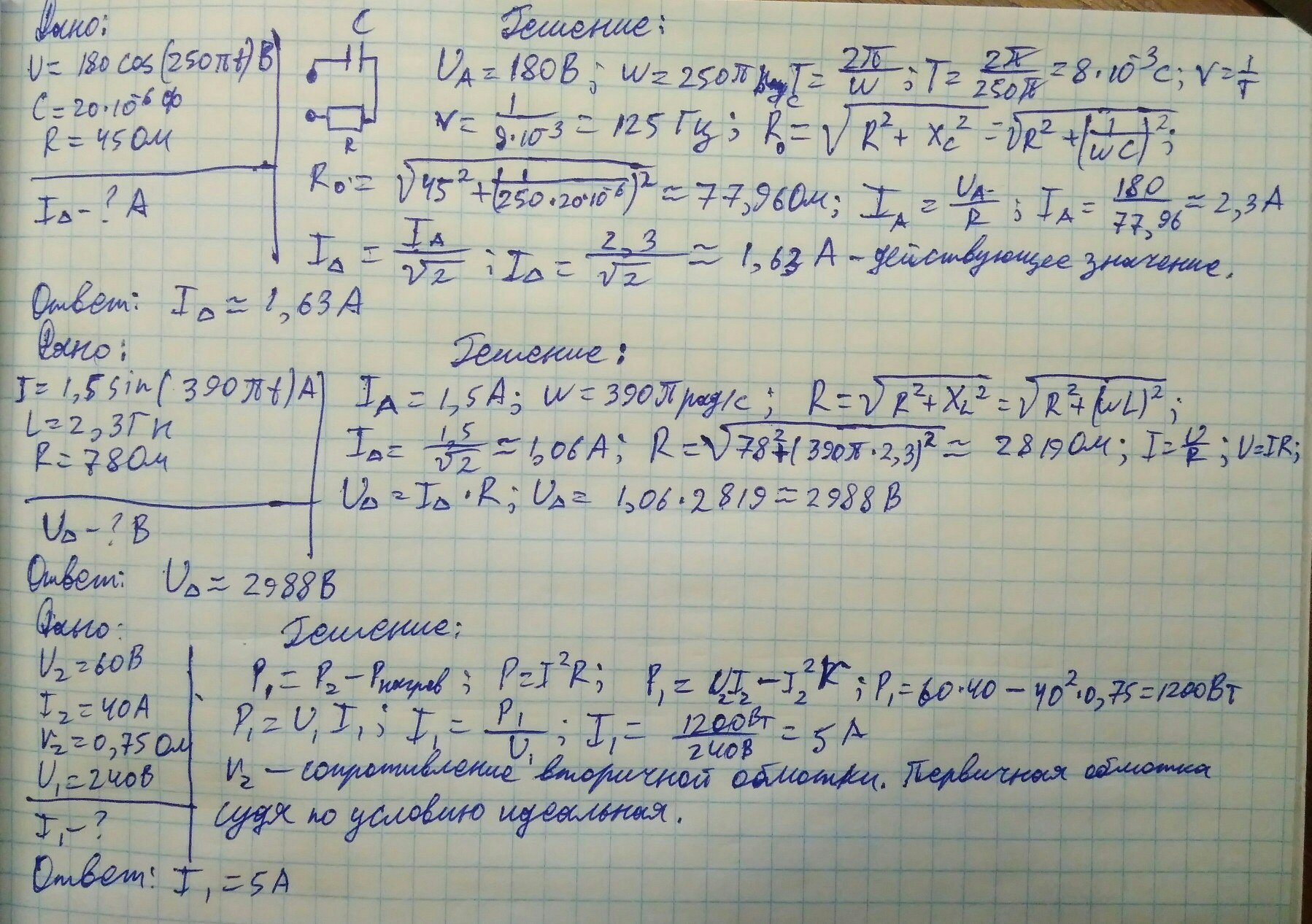 u = 180cos250πt. Определить действующее значение силы тока в цепи, если