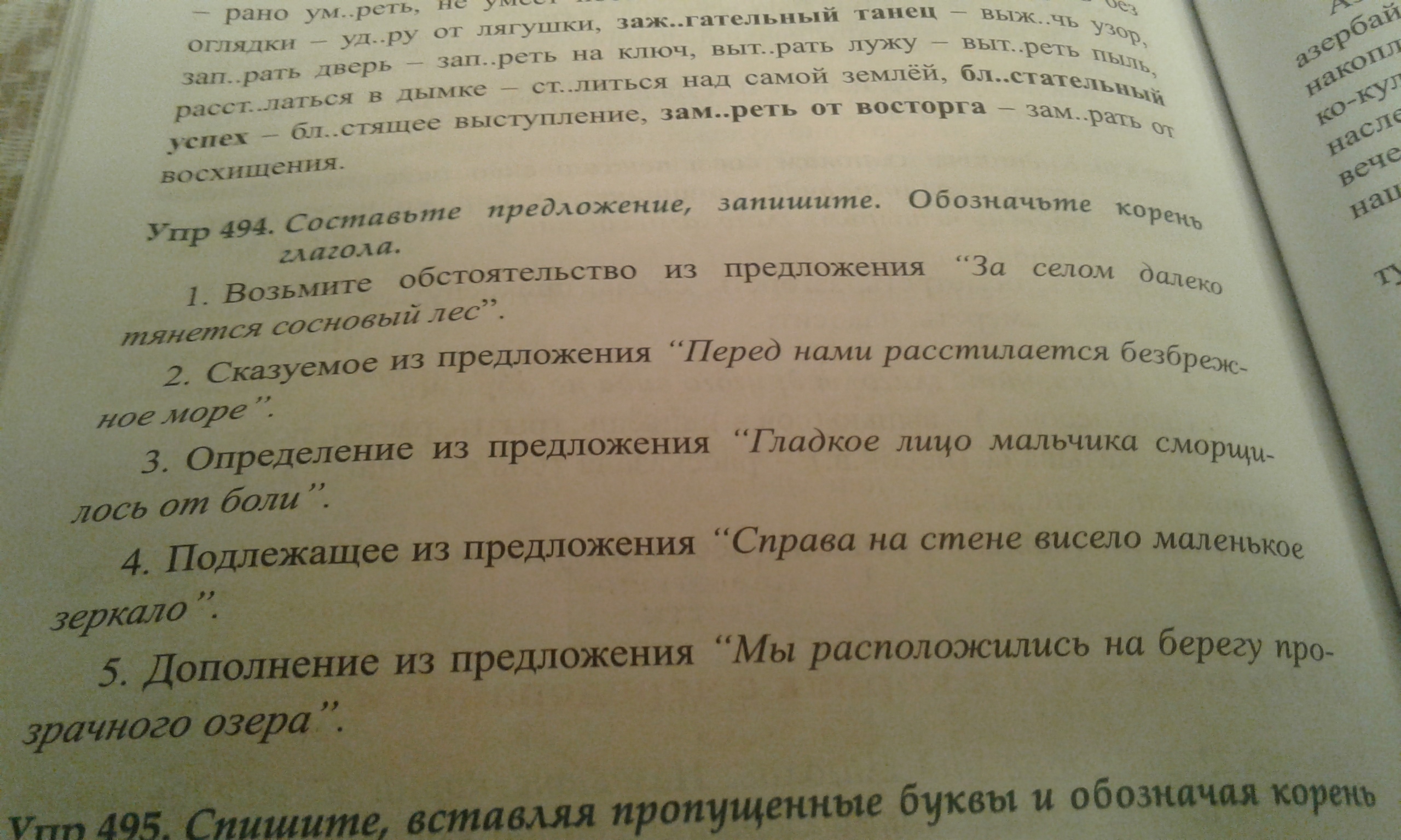 5. Мы сидели на берегу реки и смотрели в сторону заката. (Корни в словах сидели и смотрели: -сид и -смотр).