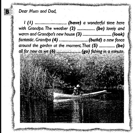 1 am having. 2 is. 3. is looking. 4 is Building. 5 is. 6. are going