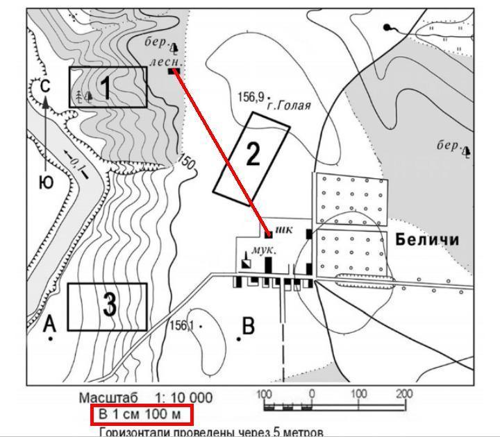 3. Полученные сантиметры умножаем на именованный масштаб (под картой - в красном прямоугольнике)