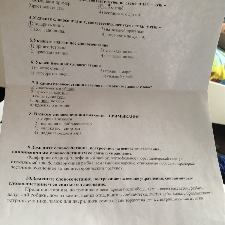 ***В 3-м неверно указаны словосочетания «глаг.+сущ.»