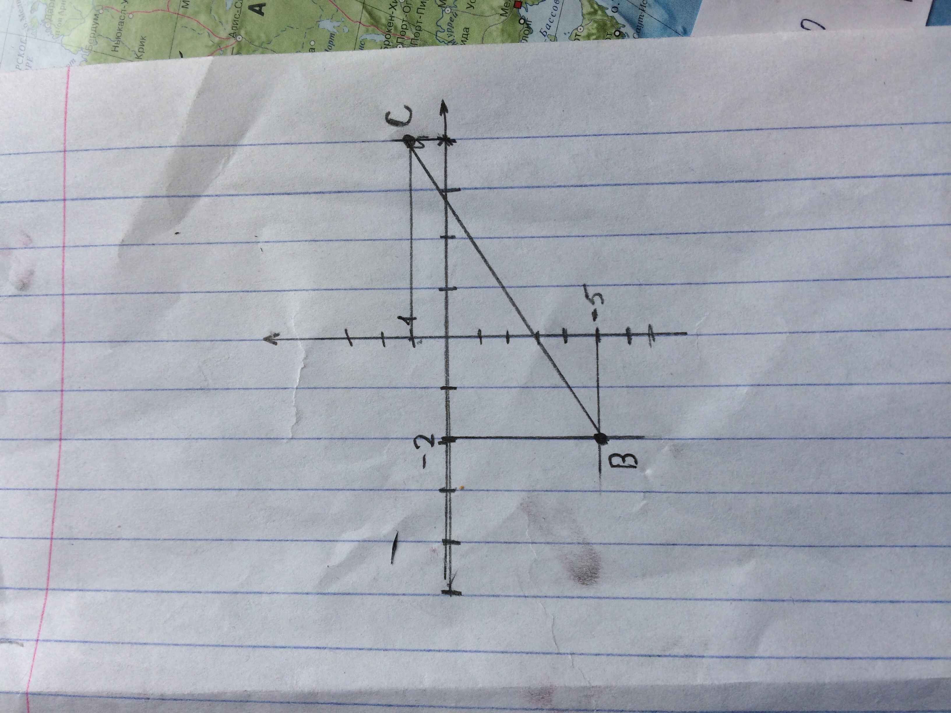 Построить отрезок ВС, где В (-2;-5) С (4;1) записать координаты точек перечисления его с осями координатами