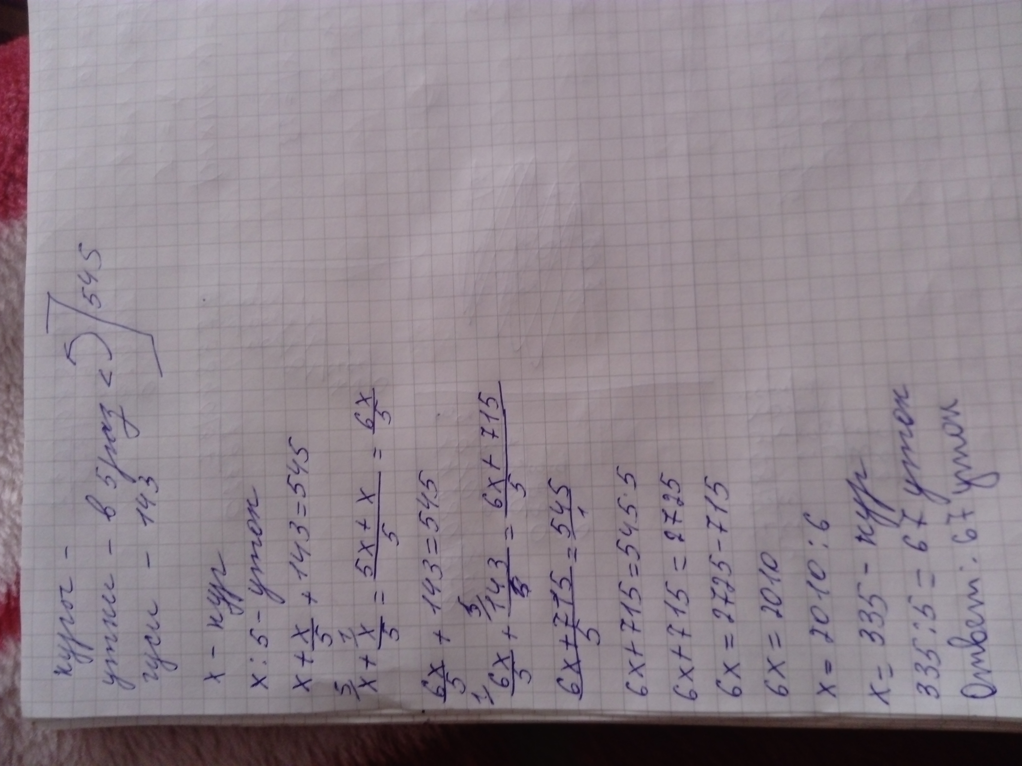 На ферме развалили кур уток и гусей всего 545 птиц уток было в 5 раз меньше чем кур а гусей 143 сколько было уток