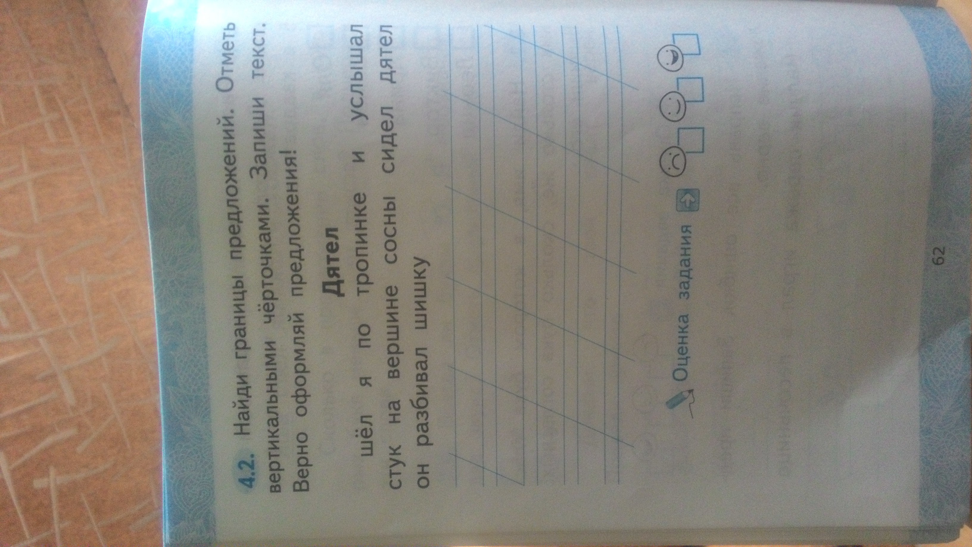 Шёл я по тропинке и услышал стук. На вершине соснв сидел дятел, он разбирал шишку.