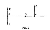 95. Рычаг укреплен на оси вращения, проходящей через точку О (рис. 1). На рычаг действует сила F1 равная 10 Н, приложенная в точке А Какую силу F2 нужно приложить в точке В и в каком направлении для того, чтобы рычаг находился в равновесии? Длина отрезка ОА равна 1 м, отрезка ОВ — 2 м.