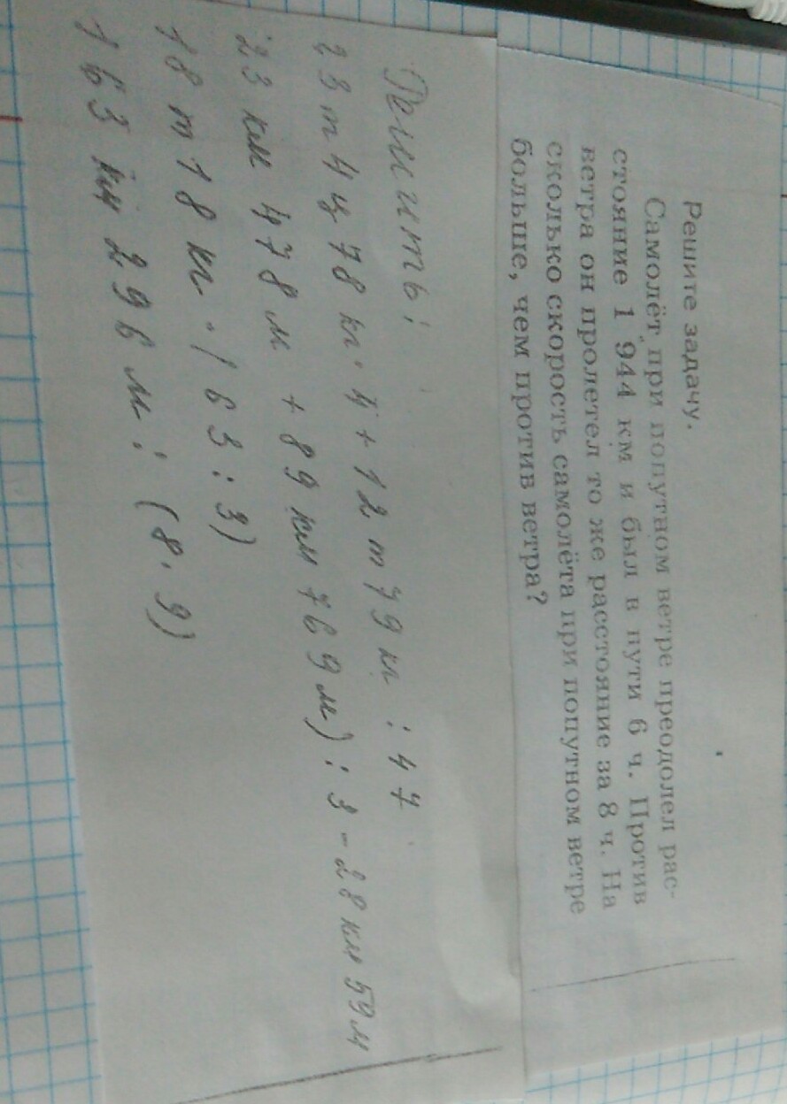 1944км:8ч=243 км/час скорость самолета при встречном ветре