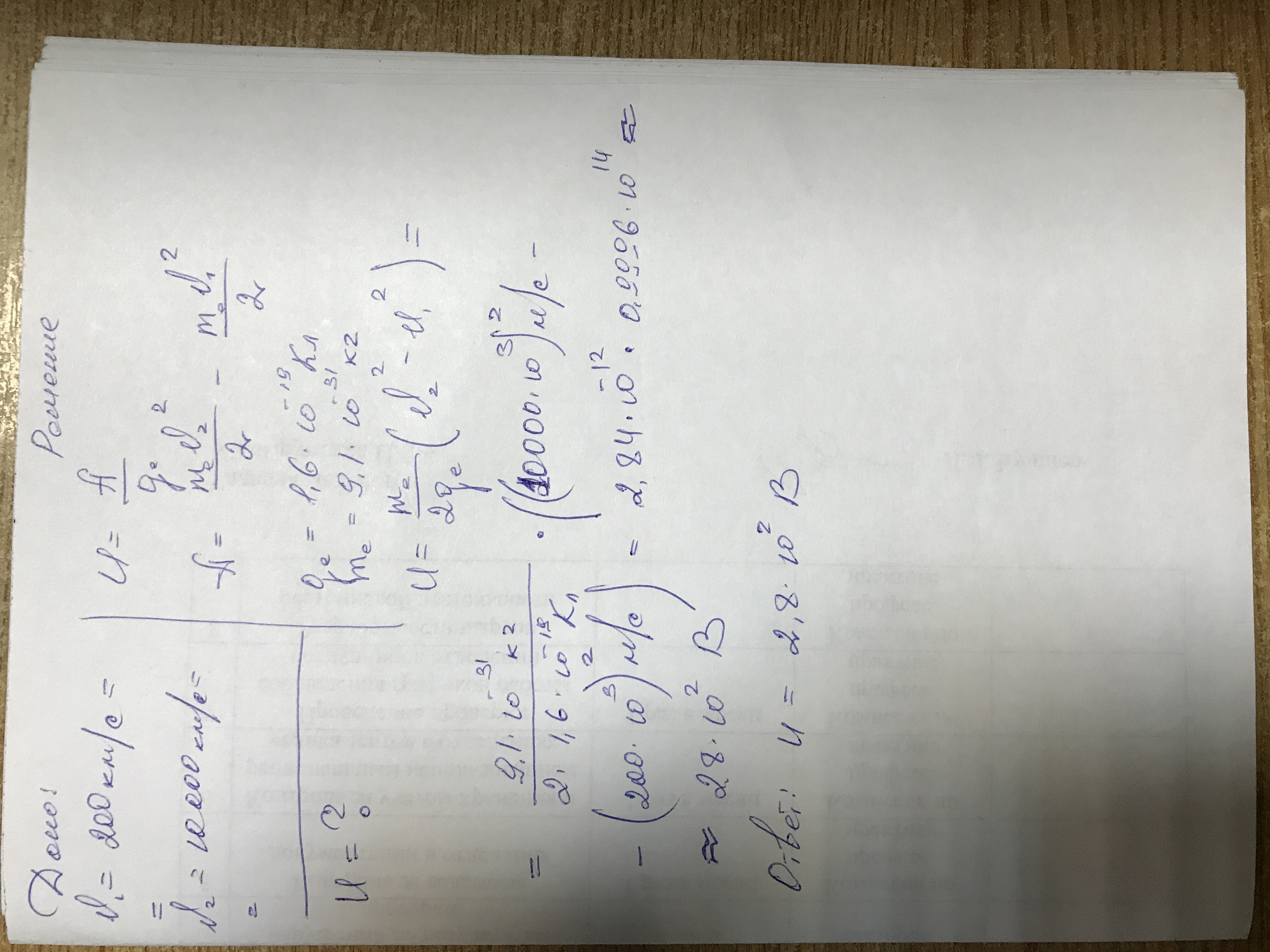Электрон, двигаясь в электрическом поле, изменяет свою скорость от 200 км/с до 10000км/с . Чему равна разность потенциалов между начальной и конечной точками пути
