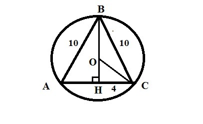В окружность вписан правильный треугольник АВС .В треугольнике АВС АВ=ВС=10 ,а сторона АС=8 .Найти длину окружности,длину дуги ВС.