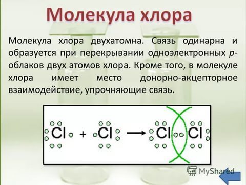 Изобразить схему строения атома хлора и электронную формулу молекулы и указать вид химической связи.
