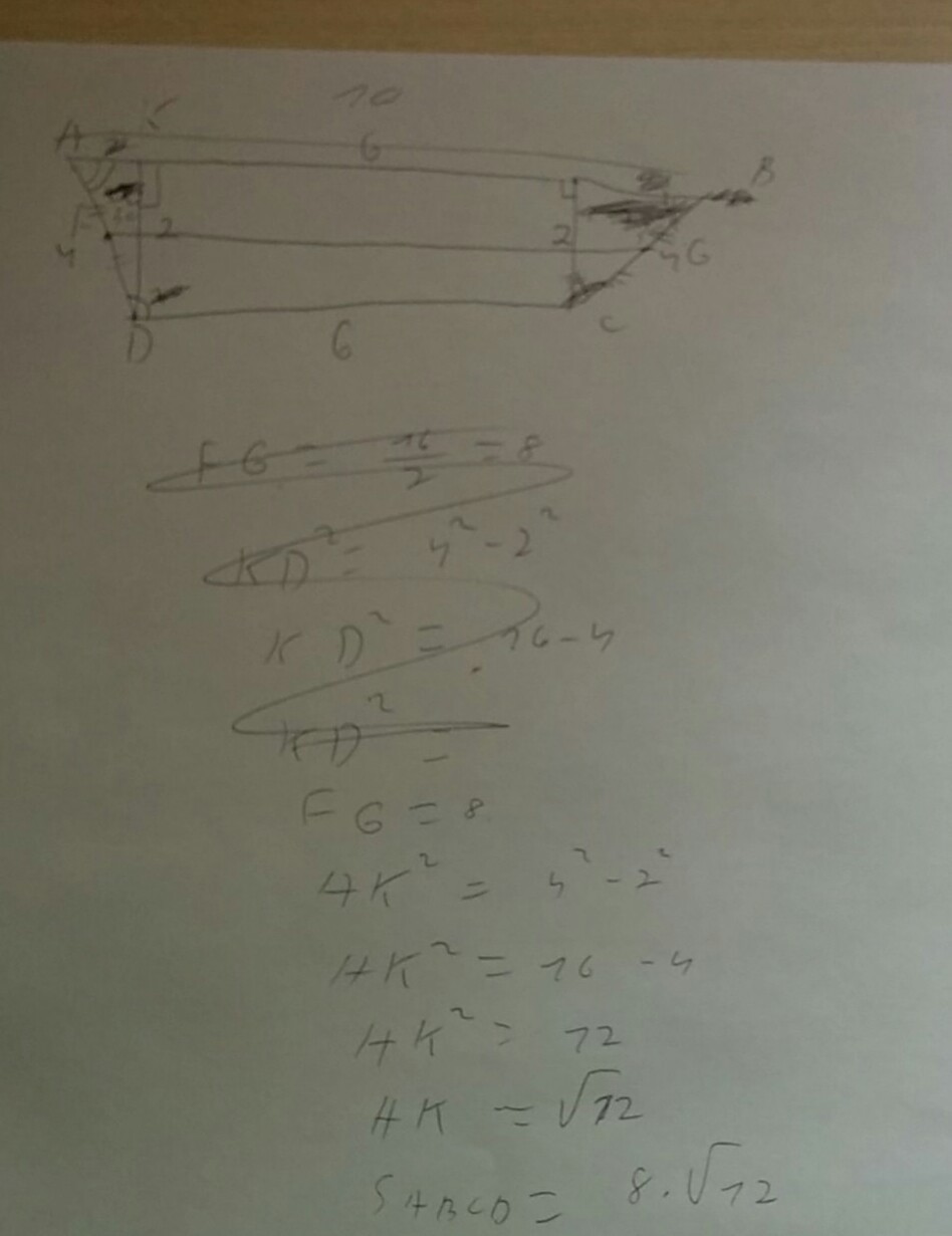 В равнобедренной трапеции меньшее из оснований равно 6см, боковая сторона равна 4 см, а угол при основании 30 градусов. Найти площадь трапеции.