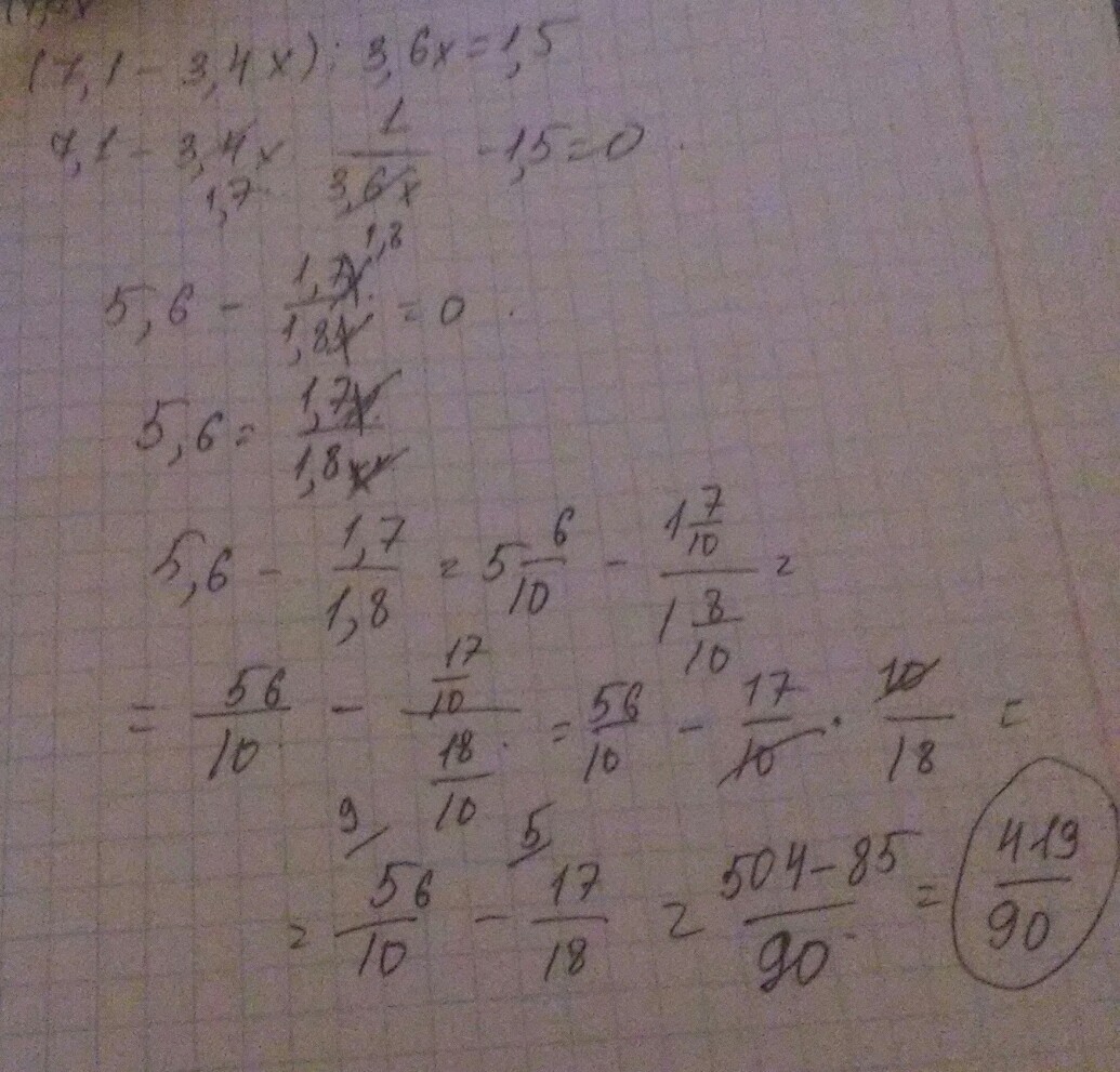 Рахмет негізі 3,4 тен кейін х жоқ екен (7,1-3,4х):3,6 = 1,5
