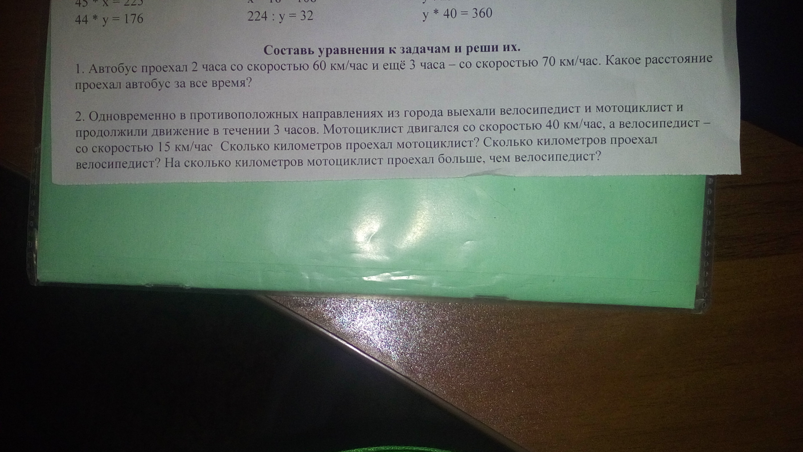 Ответ: 120 км. проехал мотоциклист, 45 км проехал велосипедист, на 85 км мотоциклист проехал больше, чем велосепедист