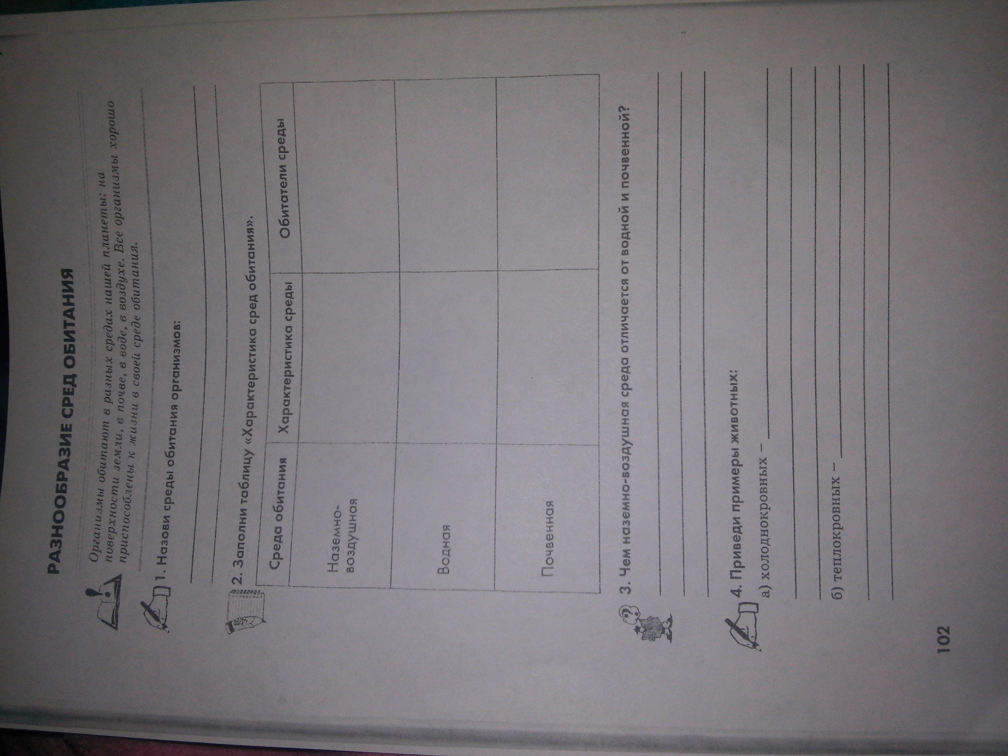 1) Водная, наземно-воздушная, почвенная и сами живые организмы.