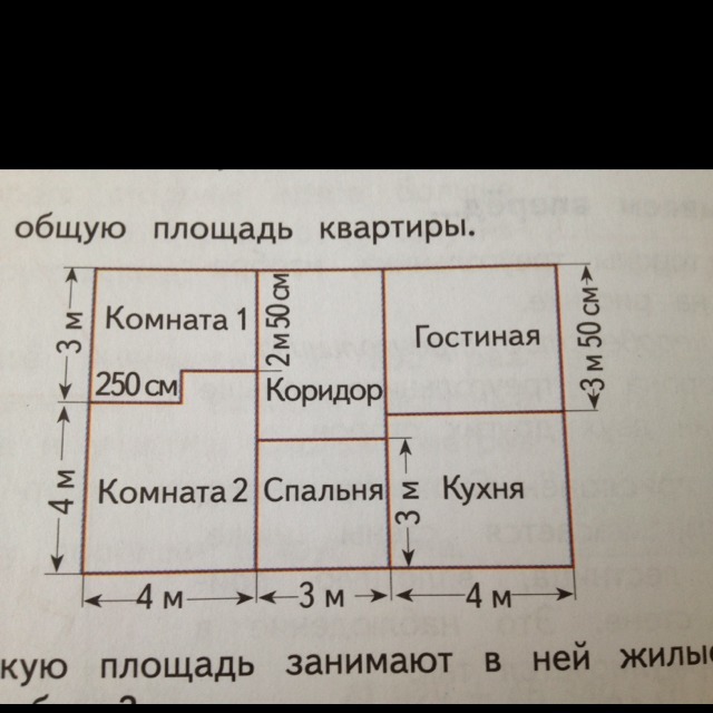 Вычисли общую площадь квартиры. Найди какую площадь занимает в ней жилые помещения а какую подсобные? Расположи жилые помещения в порядке уменьшения площади.
