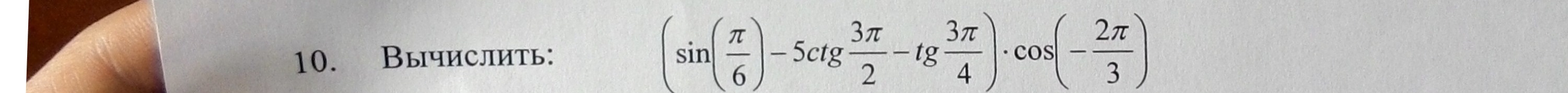 (sin(π/6)-5ctg3π/2-tg3π/4)*cos(-2π/3)=(9.138*10^-3 - 60.655 - 0.0411)*0.999=-60.647