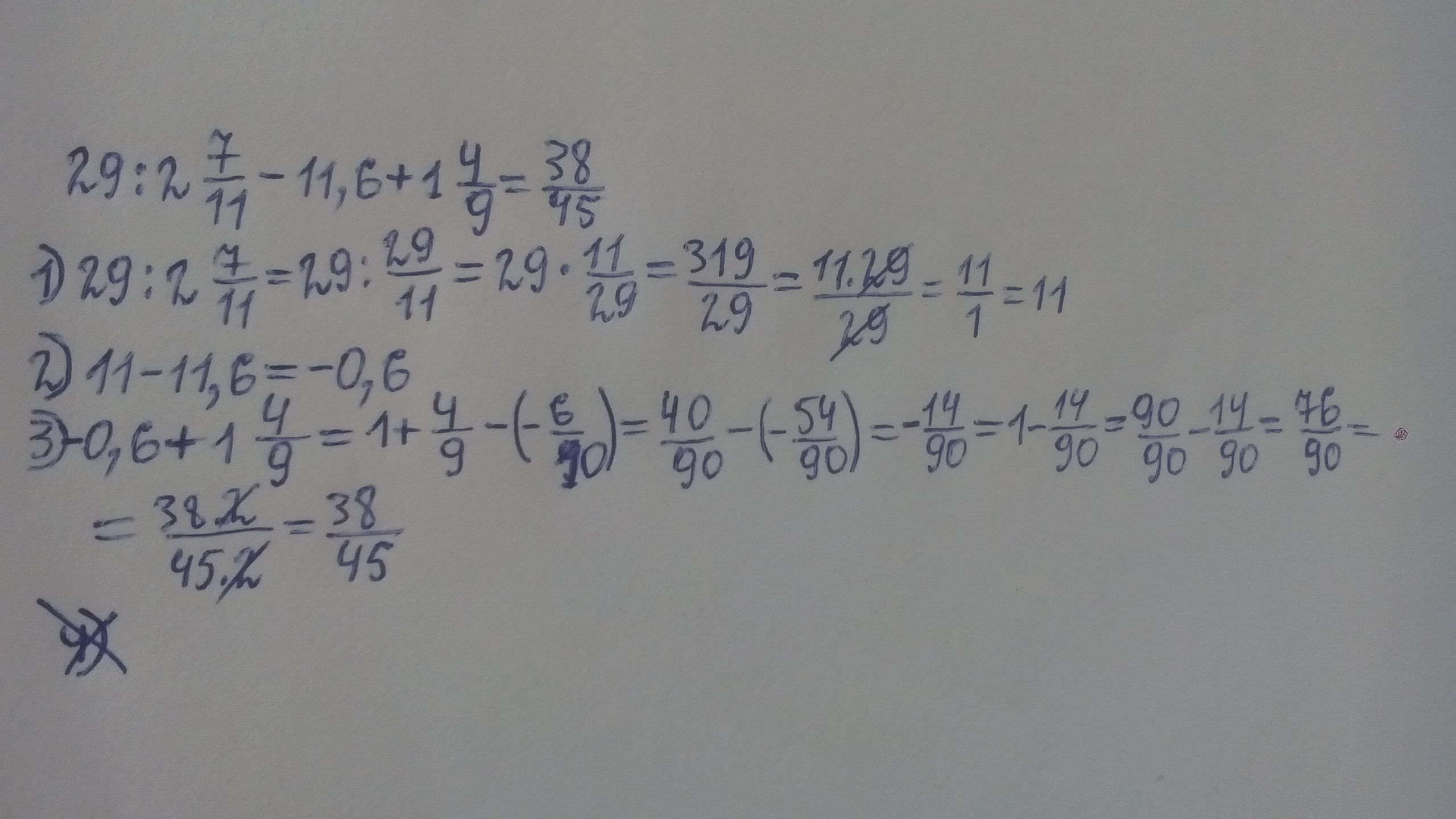29:29/11-11.6+13/9=29*11/29-11.6+13/9=11-11.6+13/9=-0.6+13/9=-6/10+13/9=-3/5+13/9=-27+65/45=38/45