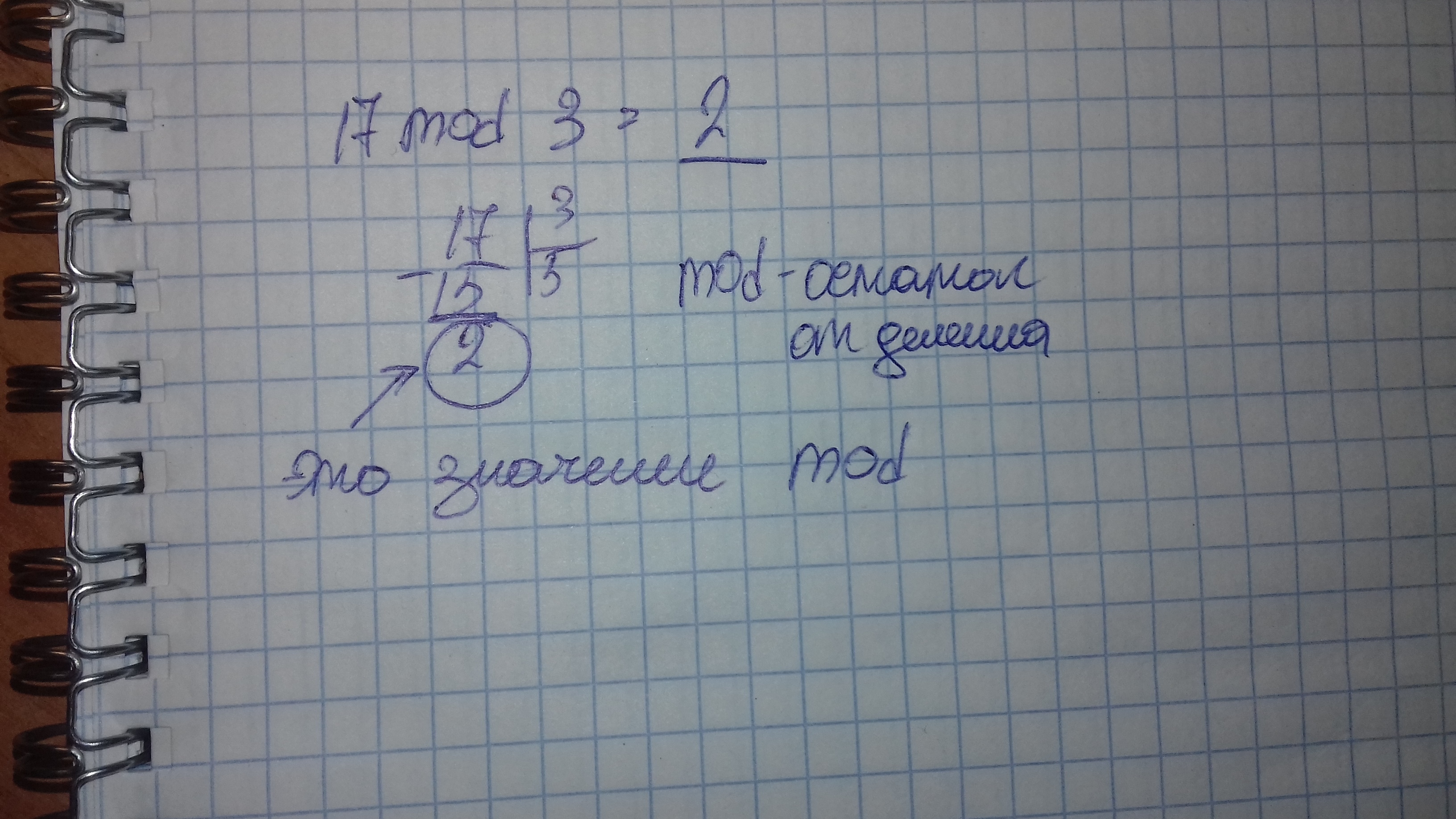 Другой пример 18 mod 9 = 0 тк при деление 18 на 9 получается целое число и следовательно остаток равен 0