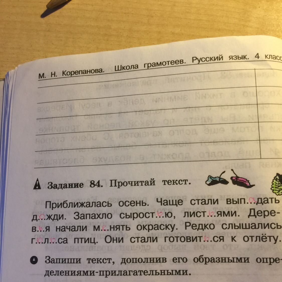 Приближалась долгая осень.Чаще стали выпадать дожди. Запахло сыростью , опавшими листьями . Деревья начали менять свою повседневную зелёную окраску . Редко слышались голоса лесных птиц . Они стали готовится к долгому отлёту.