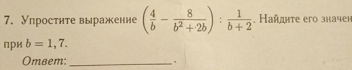 Рушение: (4/b-8/(b^2+2b):1/(b+2)=(4b^2+8b-8b)*(b+2)/b*b(b+2)=4