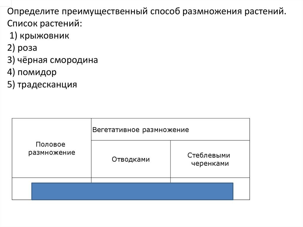 Половое размножение:4,отводками:13,стеблевыми черенками:25