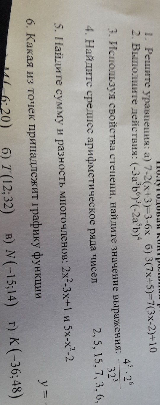 сумма: 2x²-3x+1+5x-x²-2=x²+2x-1