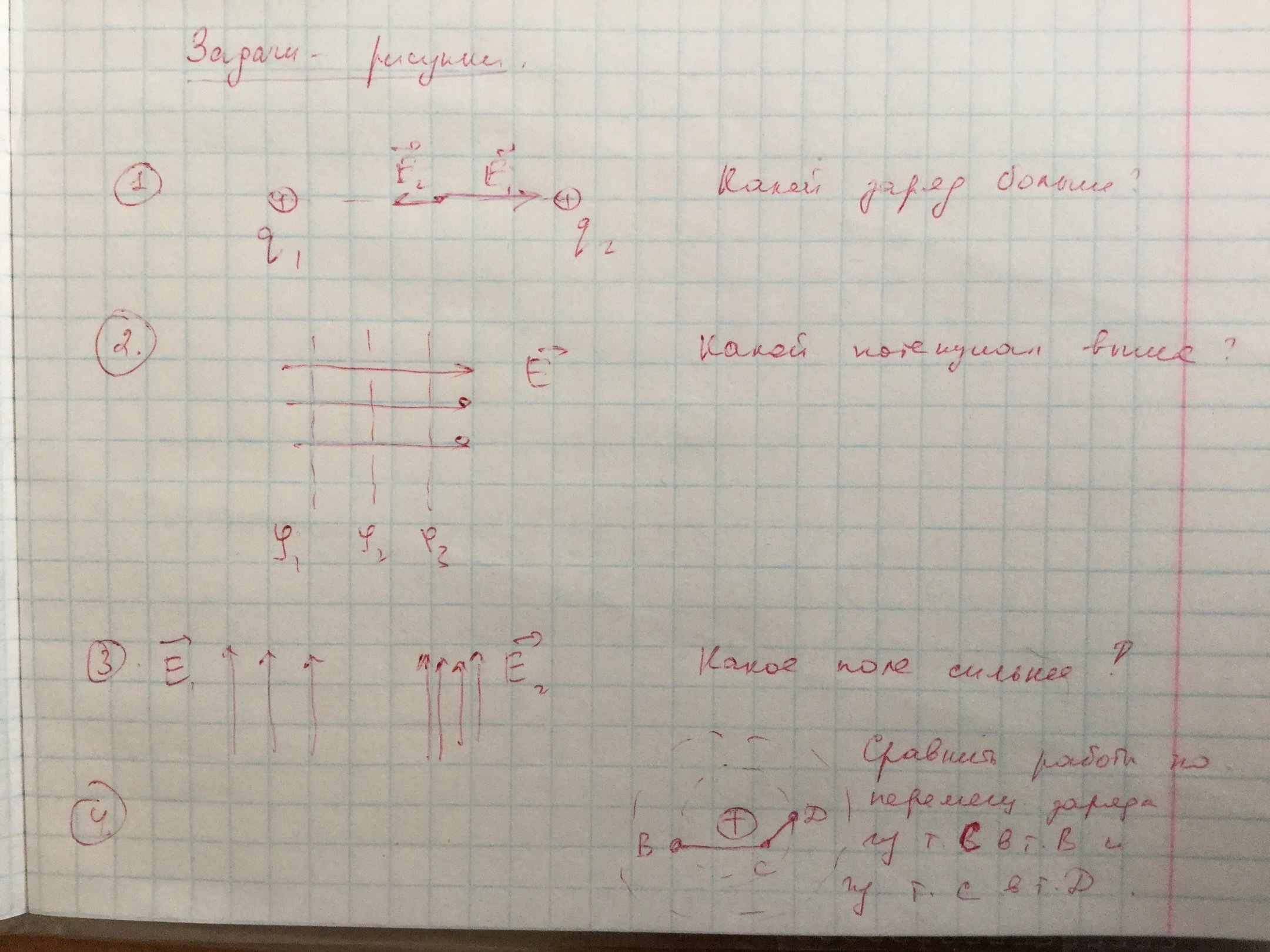 1) F1>F2 3) силовые линии Е2 гуще 4) потенциалы точек dи D одинаковы( на одной эквипотенциальной поверхности)