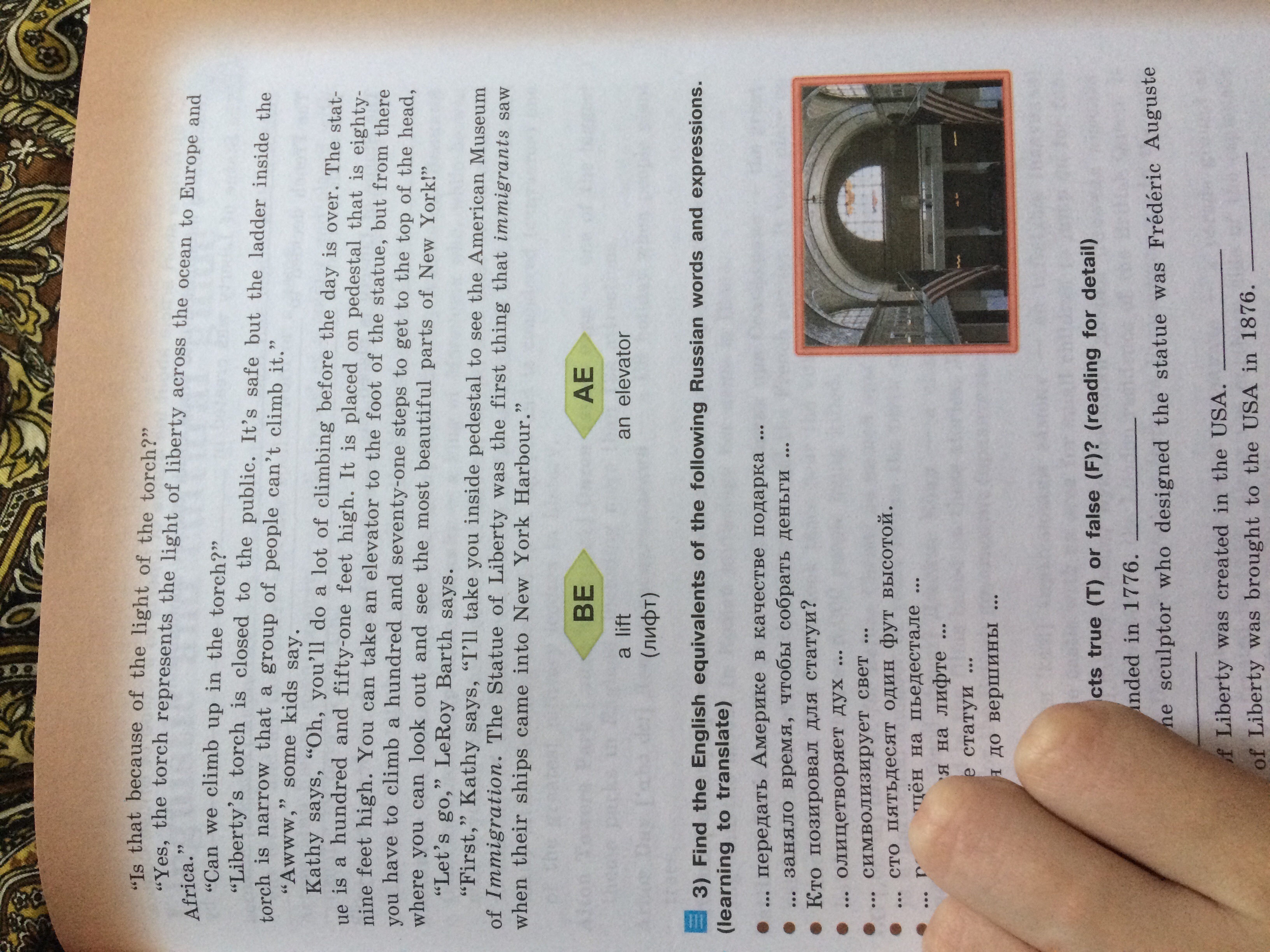 Одна из самых известных статуй в мире стоит на острове в Нью-йоркской Гавани. Эта статуя - конечно, Статуя Свободы. Статуя Свободы - женщина, которая держит факел высоко. Посетители могут пойти в статуе. Статуя является настолько большой, что целых двенадцать человек могут стоять в факеле. Еще много людей могут стоять в других частях статуи. Статуя весит 225 тонн и 301 фут высотой.