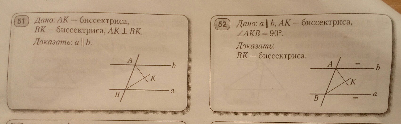 52 так как угол АКБ 90, АК бессектриса, а парально в