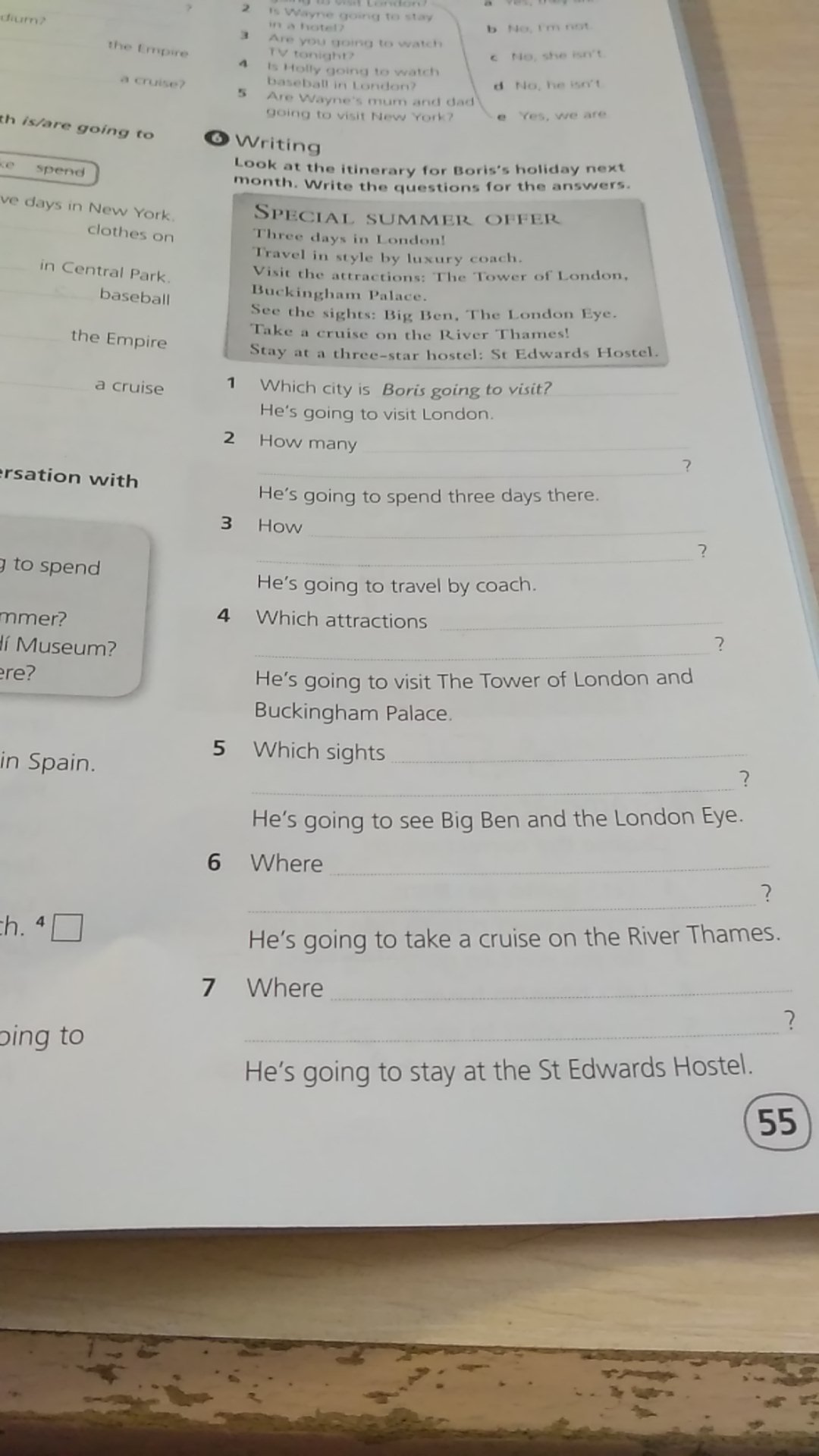 5/ Which sights is he going to see?