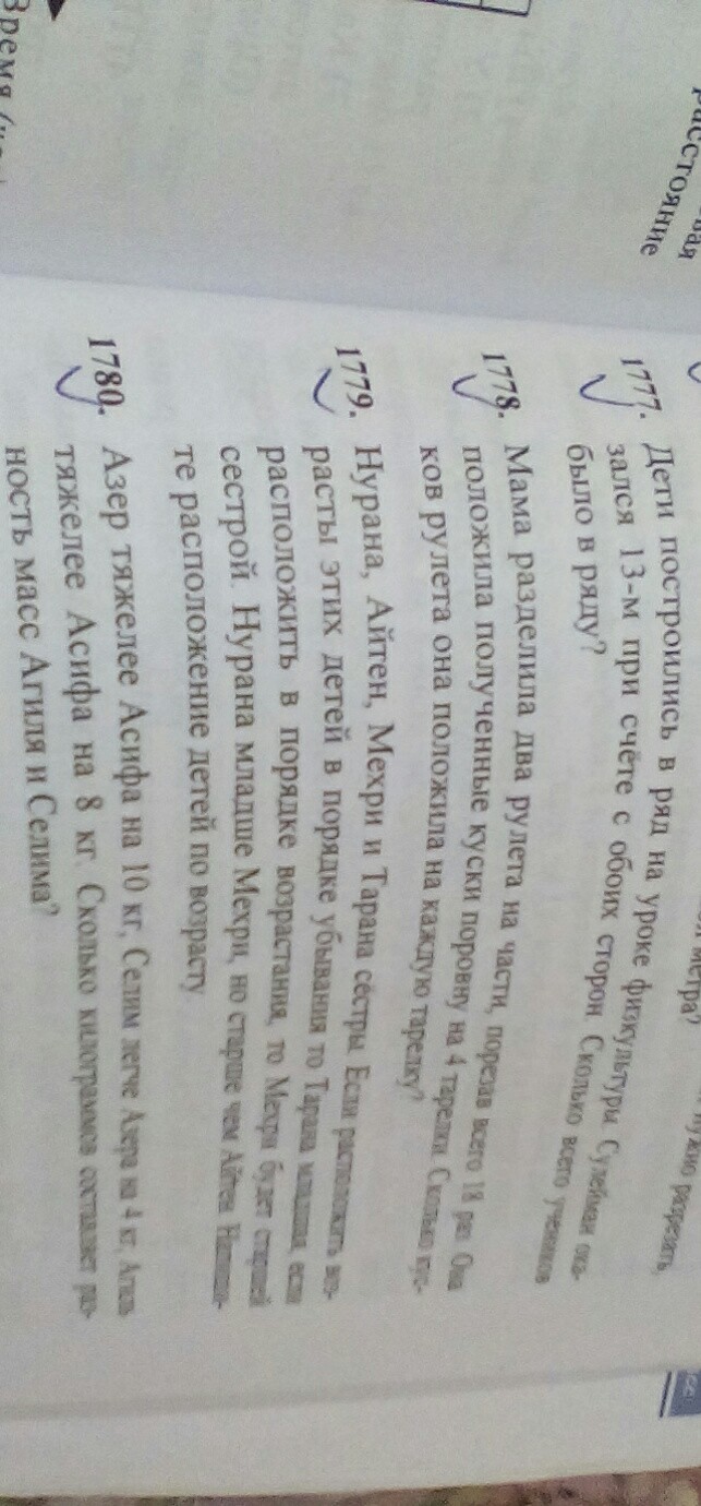 78.мама каждый рулет разрезала 18:2=9 раз и получила из каждого рулета 10 кусочков.10*2=20 кусков всего у мамы.20:4=5 кусков на 1 тарелку положила мама