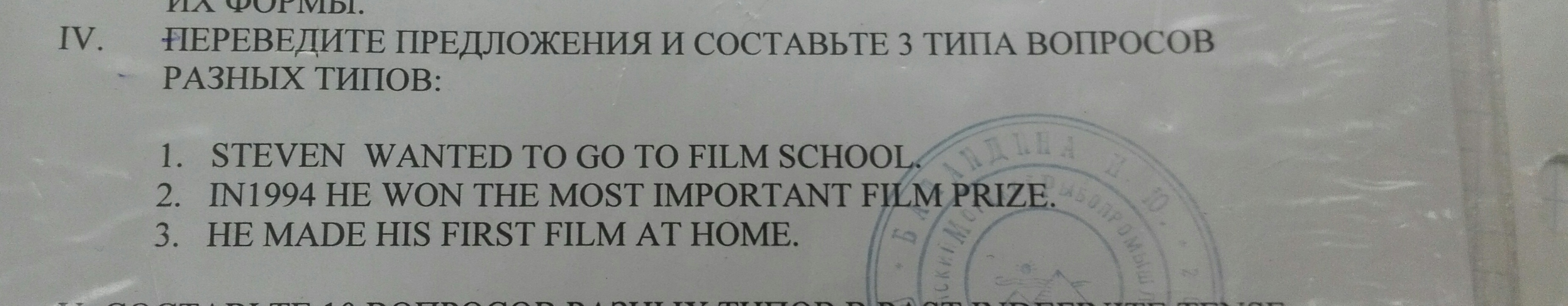 Did Steven want to go to film school? ( по логике так, но я лично не могу понять перевод. там ведь не нужно слова самим ставить?)
