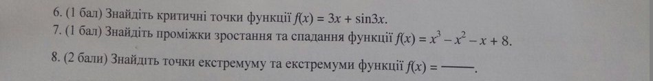 f ' (x) =0 ⇔3(1+cos3x) =0⇔1+cos3x =0⇔cos3x = -1 ⇒ 3x = π+2π*k , k ∈ Z.