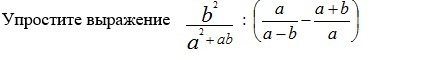 = frac{ b^{2} }{ a^{2}+ab } :   frac{ a^{2}-( a^{2} - b^{2} ) }{a(a-b)} =frac{ b^{2} }{ a(a+b) } * frac{a(a-b)}{ a^{2}- a^{2} + b^{2}  }  = frac{a-b}{a+b}