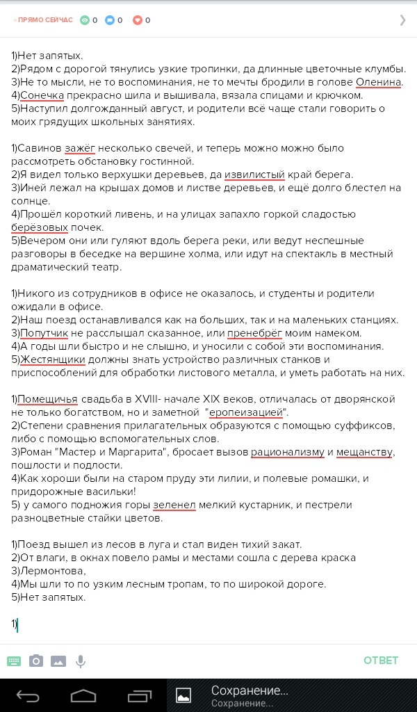 2)Чай с душистым мёдом был особенно вкусен и мы долго просидели за чисто выструганным белым столиком в саду. 3)Картины и вазы и другие детали интерьера отражали утончённость вкуса её хозяина.
