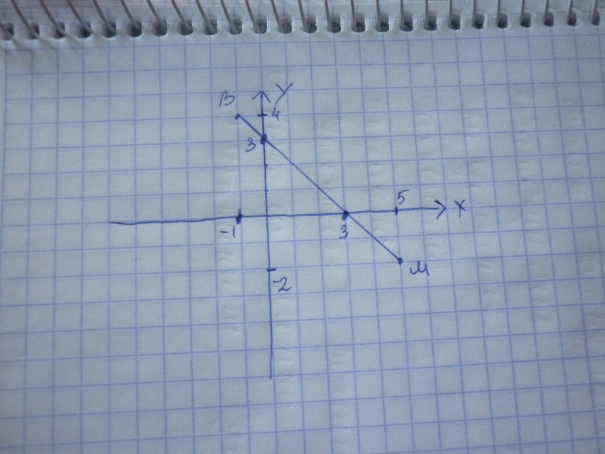 3. (ниже прикрепила фотку) точки пересечения по оси Х (3:0), по оси У (0:3).
