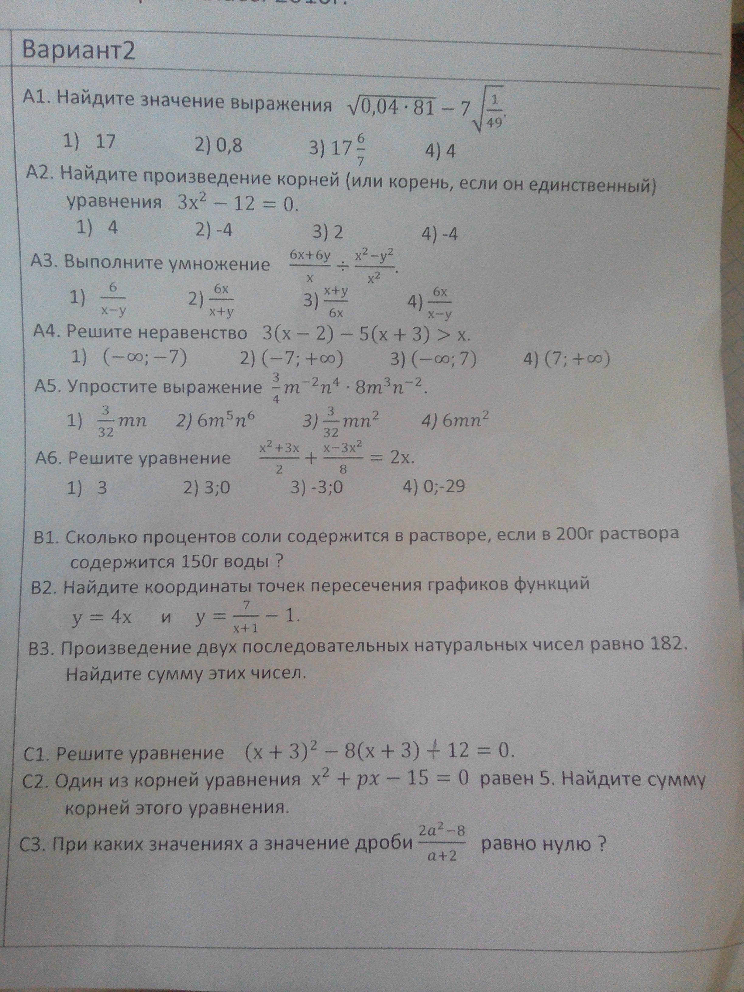 с1 ответ -6 -2 Сумма корней в задании с2 равна 2 с3 при а плюс минус 2