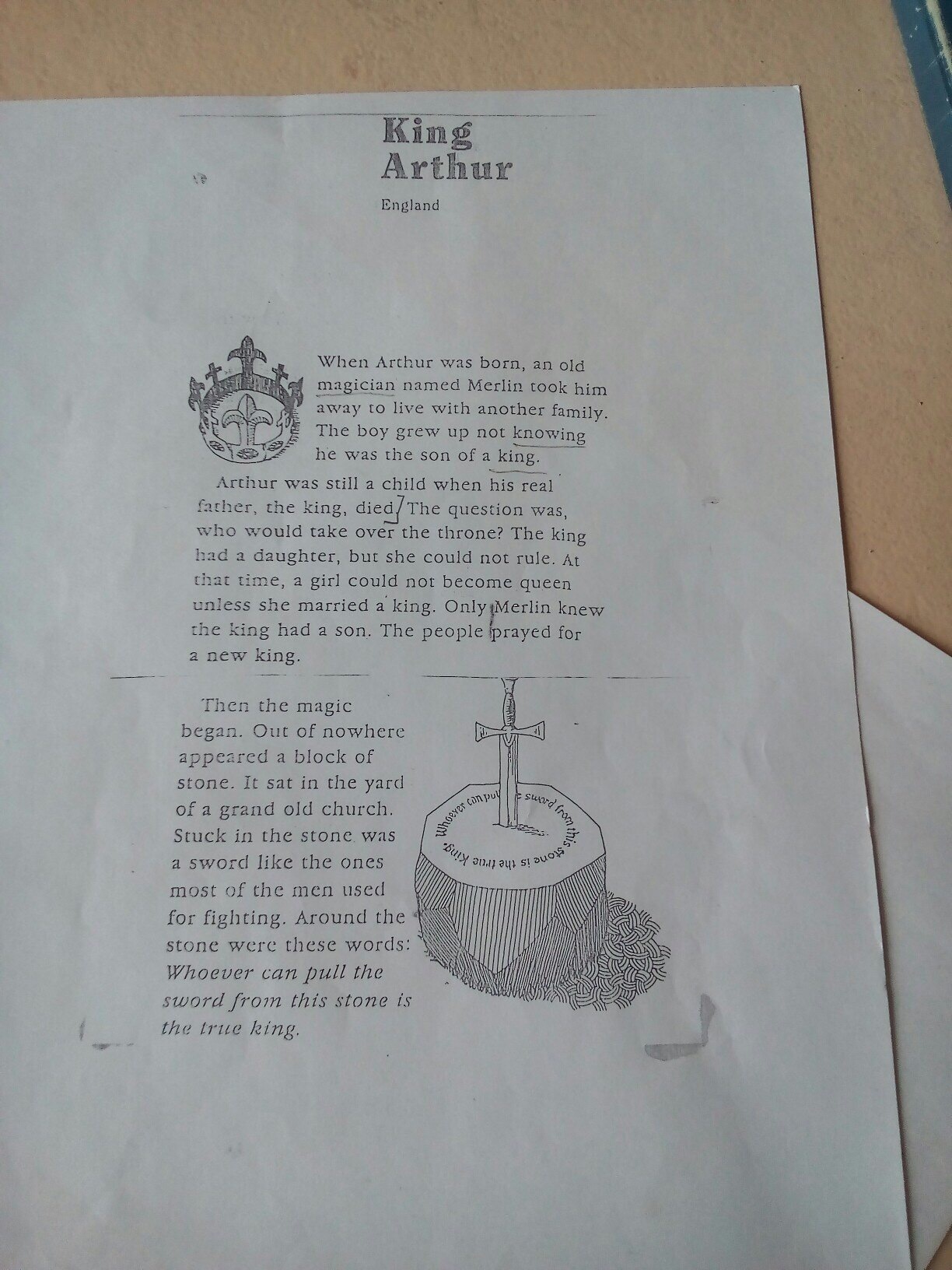 Затем произошло волшебство. Из ниоткуда возник камень. он стоял во дворе большой старой церкви. Из камня торчал застрявший в нём меч, такой, какой большинство мужчин использовали в сражениях. По камню шли слова: Тот, кто вытянет из камня меч, - настоящий король!