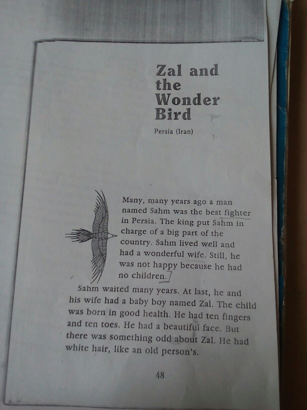 Сам ждал много лет. В конце концов, он и его жена родили мальчика и назвали его Зал. Ребёнок рос здоровым. У него было по десять пальцев на руках и ногах. У него было прекрасное лицо. Но что-то было в нём странное. У него были белые волосы, как у старика.