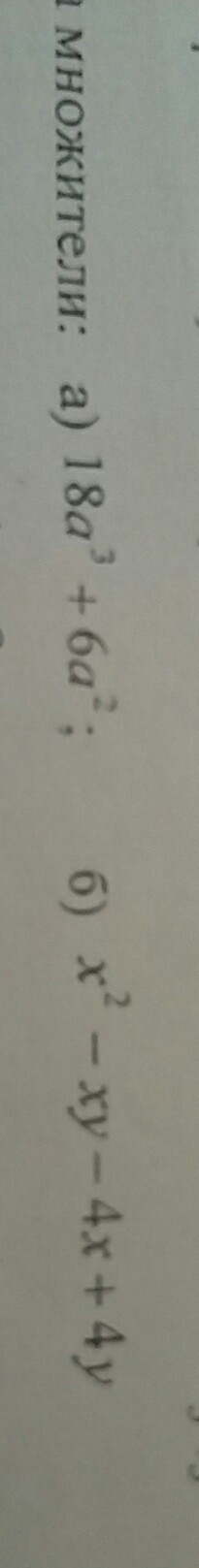 18a^3+6a^2=6a^2(3a+1); (x^2-xy)-(4x-4y)=x(x-y)-4(x-y)=(x-y)(x-4).