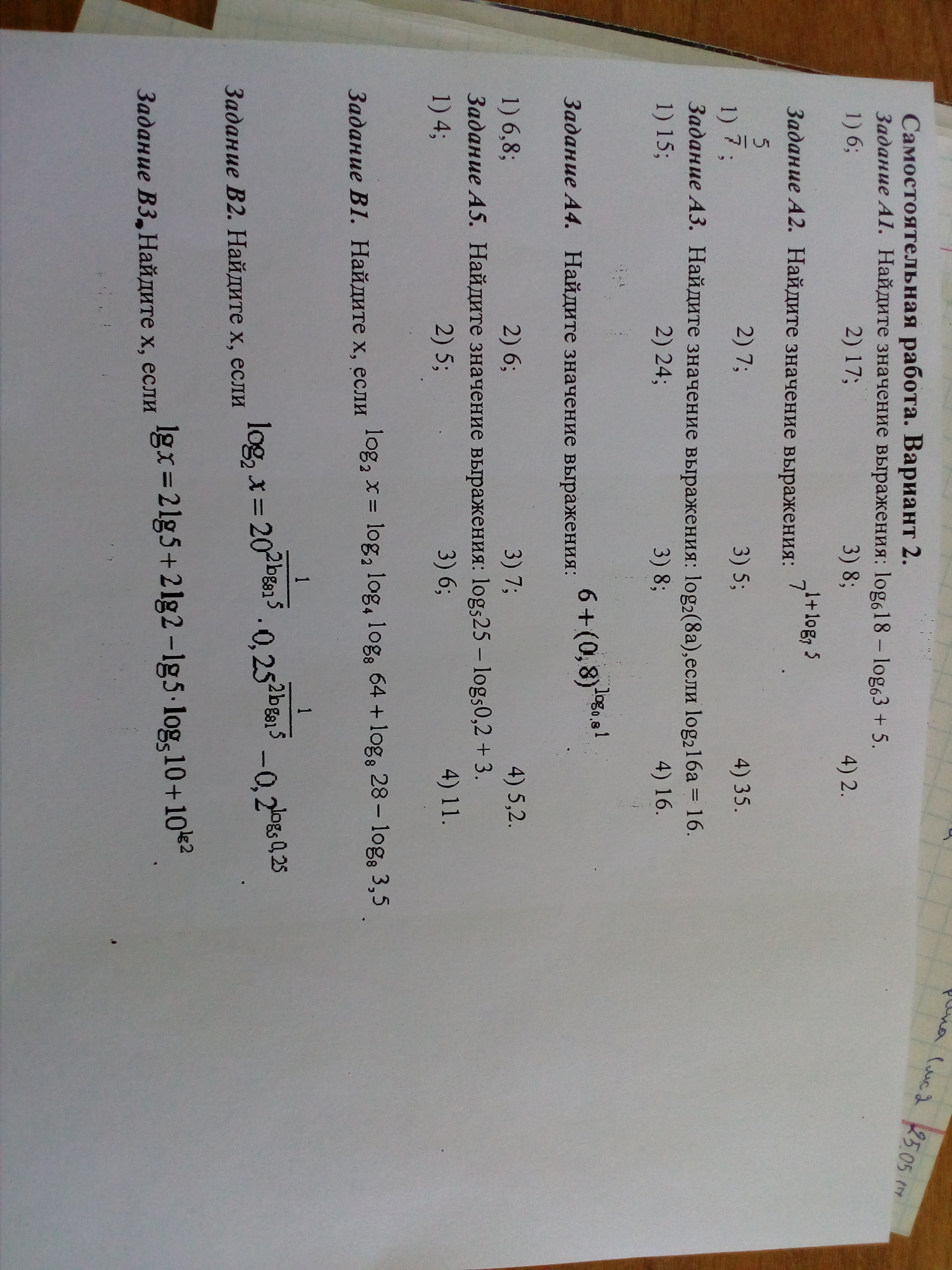 Помогите решить тестовую часть, и часть В, логарифмы...